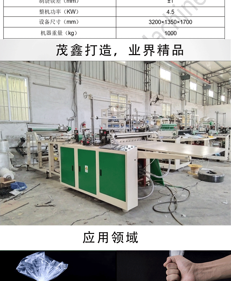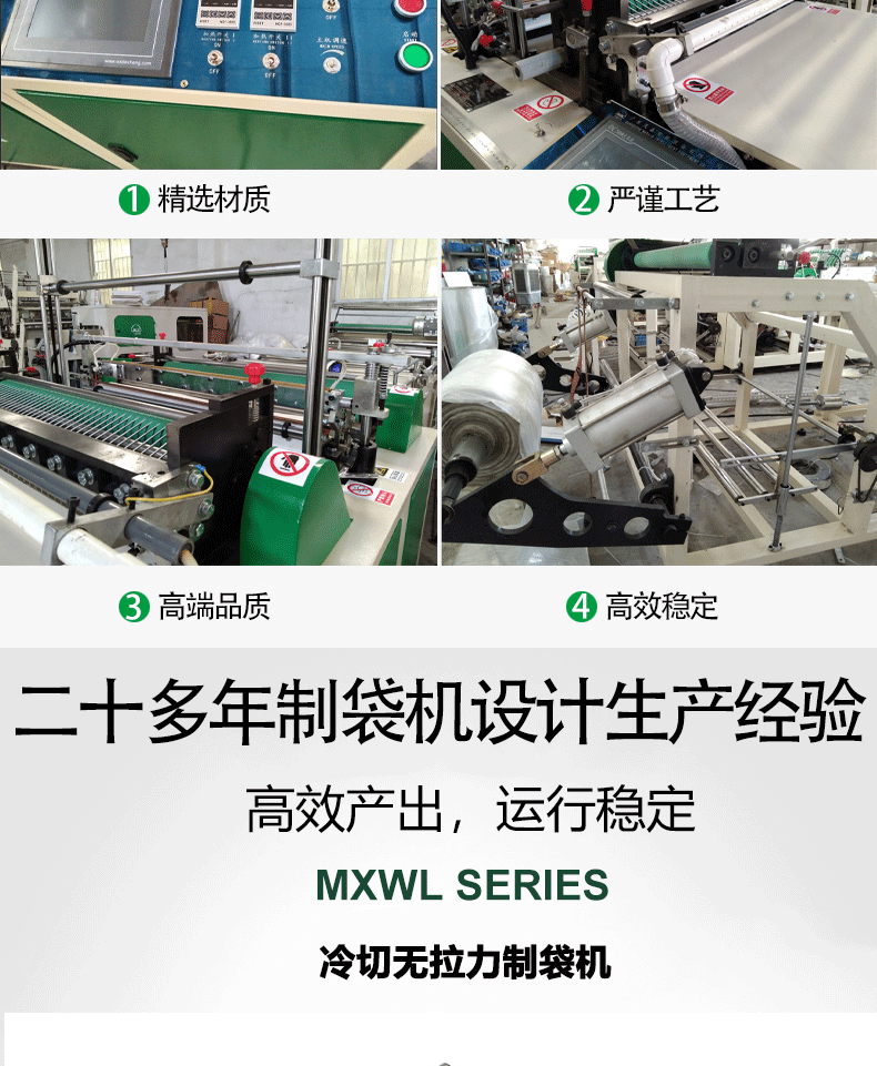 ![]() ![]() ![]() ![]() ![]() ![]() ![]() ![]() ![]() ![]() ![]() 特點: *該機適宜加工各擋HDPE、LDPE、PP等筒狀,塑料薄膜的本色或彩色平口袋、背心袋。 *該機特點是減少機器在運行中薄膜袋封口拉伸現(xiàn)象,能加工薄膜袋焊接寬度為1-10mm的袋子,增加袋子的焊接強度。 *電眼跟蹤彩印薄膜色標,圖文位置更準確。 *焊刀采用合金鋼加工制作,分三段加溫,兩端用加熱管加溫,單獨溫度表控制。 *焊刀后面加倍送,單獨伺服電機控制,壓力用氣缸控制。 *電腦設(shè)定制袋長度和速度,廢品少,操作更簡單。 *具有送料、封切、計數(shù)、出料、報訊等自動化功能。 主要技術(shù)參數(shù): ![]() *由于不斷研究改進,我司保留改變設(shè)計之權(quán)利。 |