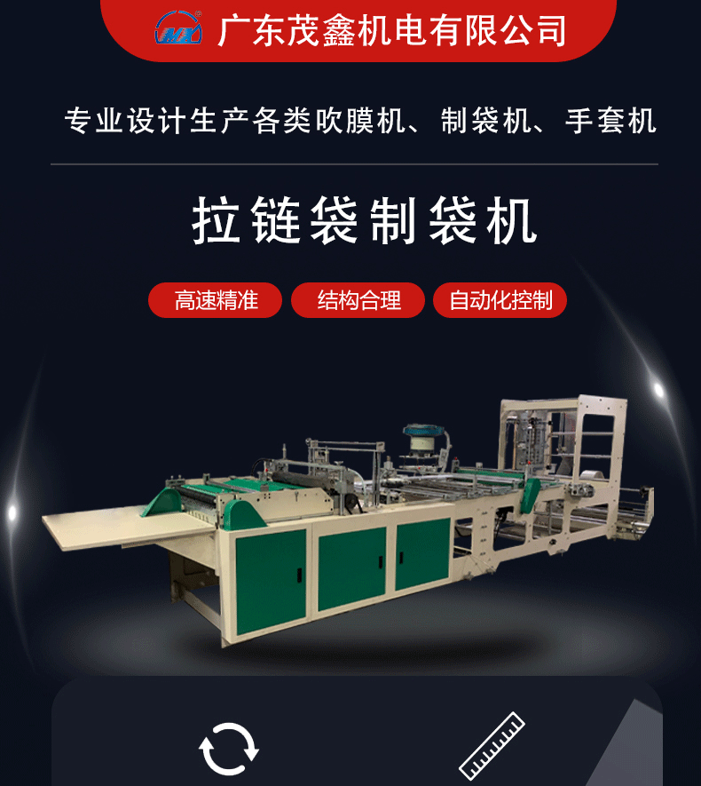 * 該機(jī)適應(yīng)于BOPP、OPP、CPE、PE、PP、PVC等薄膜進(jìn)行自動(dòng)連續(xù)加工拉鏈袋,拉鏈?zhǔn)滞齑?/span>,產(chǎn)品廣泛應(yīng)用于服裝、文具、精品包裝等方面。
