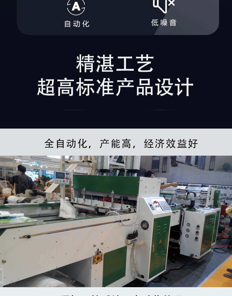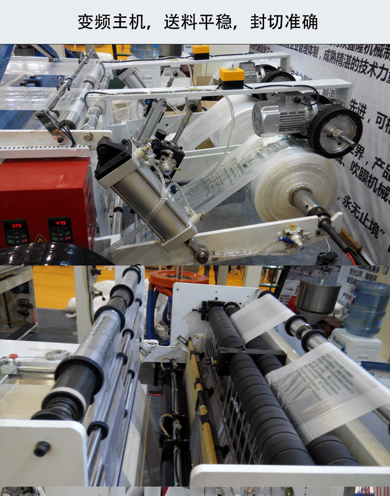 *主機(jī)采用變頻器調(diào)速,自動送料,配自動糾偏裝置,使制袋平穩(wěn),封切準(zhǔn)確。