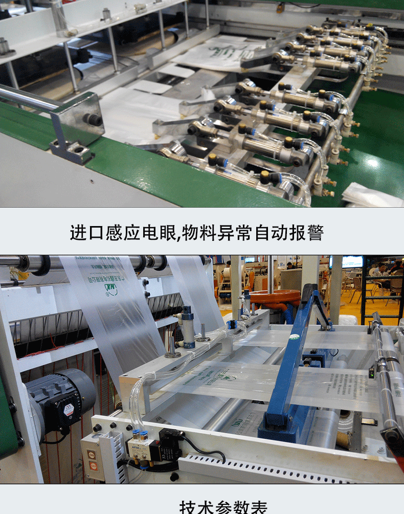 *該機(jī)適應(yīng)于制作HDPE、LDPE、PP等筒膜的背心袋。